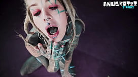 Chica alternativa con TATUAJES PERFORADOS hace una mamada descuidada y se la follan por el ano 3 min