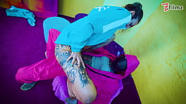 Juegos de chorros: Anal con una pequeña tatuada: penetración profunda, sexo anal, facial y tragada. 2 min