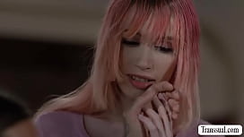 Transexual pequeña fina con una polla admirable está recibiendo un paseo anal satisfactorio 6 min